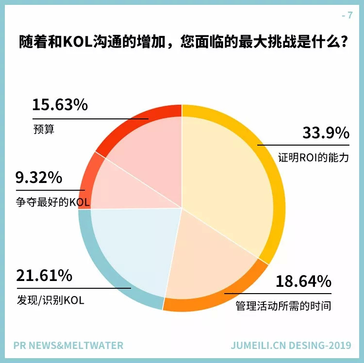 然而,在图7中可以看到对ROI的更多关注,34%的人表示他们对KOL最大的问题是“证明ROI的能力”。托德说,“证明投资回报率的能力仍然是该行业面临的最大挑战之一。为了更容易衡量结果,应该工作开始前就设定目标。如果目标是提高品牌意识,那么就要衡量影响力和印象。如果目标是参与度,那么就需要计算用户的参与度总和与增速。”
