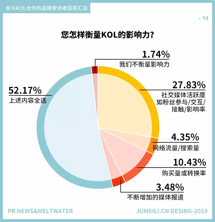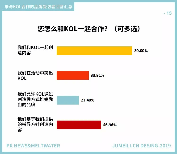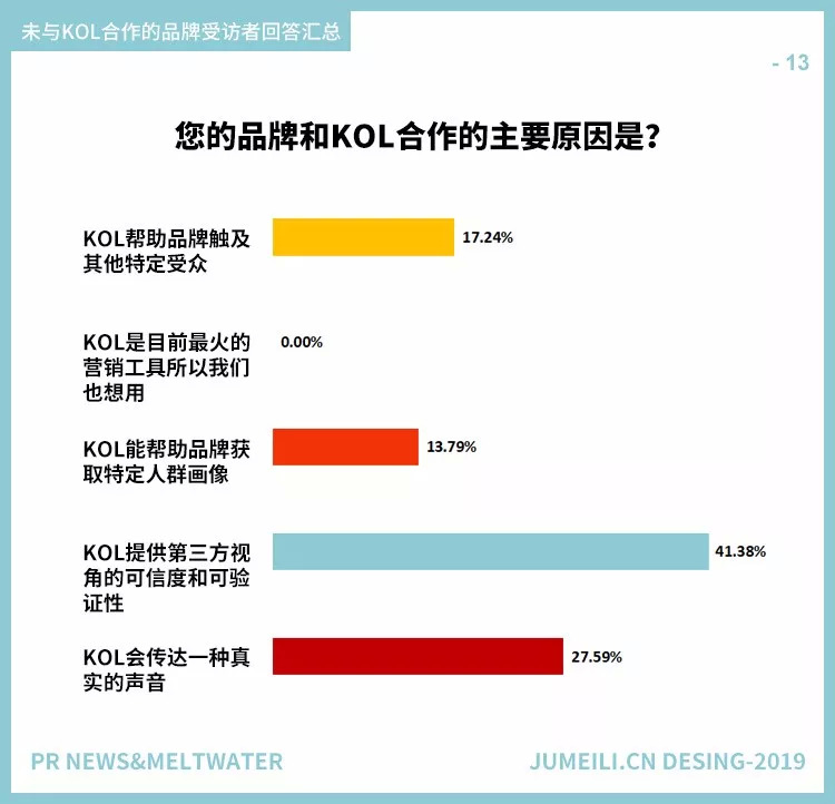 与KOL合作的品牌受访者(图10)和不合作的品牌受访者(图13)的回答一致性很有趣。