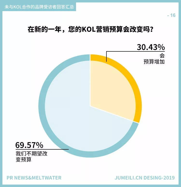 约有70%的专业人士表示不改变KOL营销预算,好消息是约有30%的受访者表示预算会增加,这意味着他们有可能会在新的一年开展KOL营销。