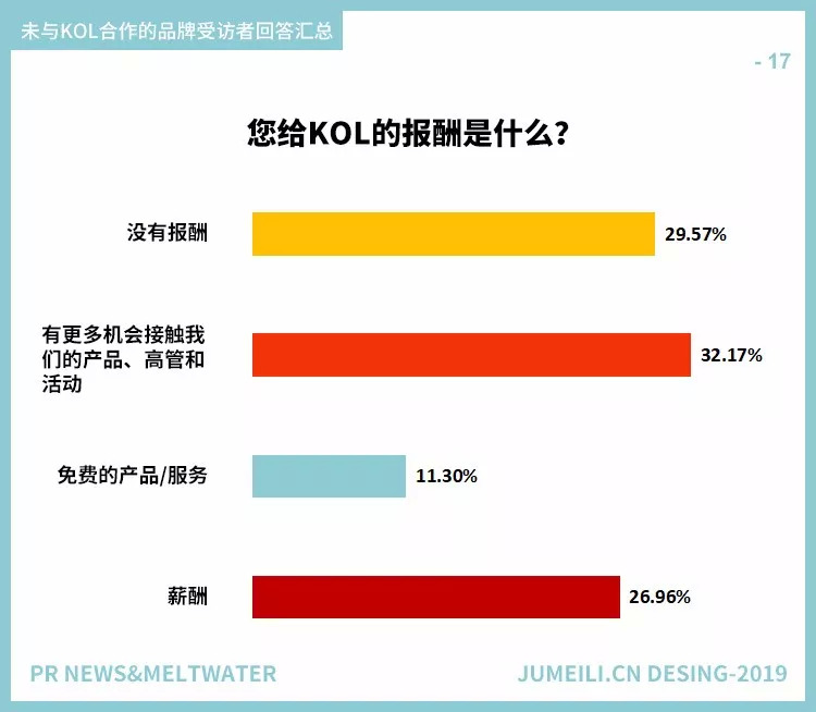 除了衡量KOL对营销和沟通的重要性,调查问题还包括了品牌如何以及为何与KOL合作,品牌支付的报酬(如果有的话),以及合作会产生什么问题。