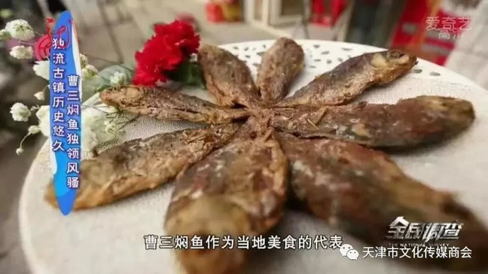 独流焖鱼:1900年,当地村民曹国章经营一家小饭店,自创焖鱼,由于他在家中排行老三,所以当时人就起名曹三焖鱼,一直沿用至今,首先选用一两左右的小鲫鱼,洗净,去肠,腮,用油炸,在锅内加入调料后,用小火焖10个小时左右,即可出锅食用,焖鱼骨肉全酥,口感咸香,略带甜味。