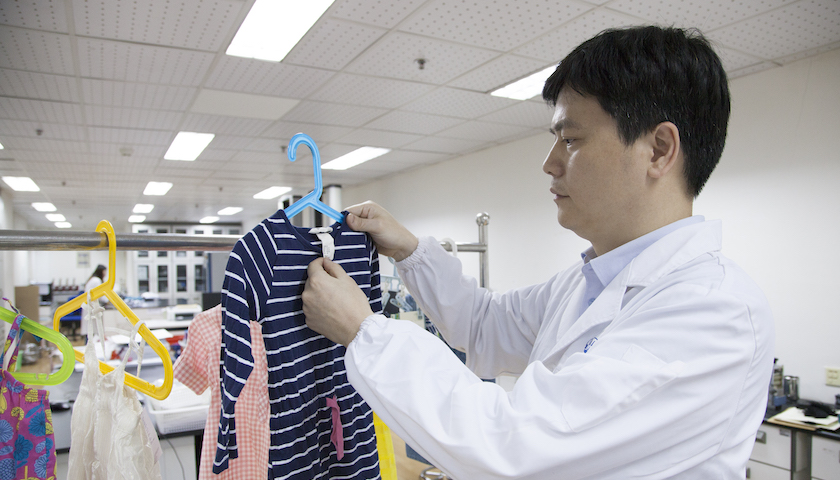 上海海关提醒公众,家长为孩子选购服装时,应注意贴身衣物的内置标签,以免对孩子的皮肤造成刺激,在衣服颜色上,最好选择浅色的纯棉衣服,新衣服最好清洗过一次再穿,避免掉色对孩子健康造成危害。此外,服装中的含有装饰性亮片和亮珠容易脱落会造成吞咽的风险,因此,上海海关也不建议购买此类服装。