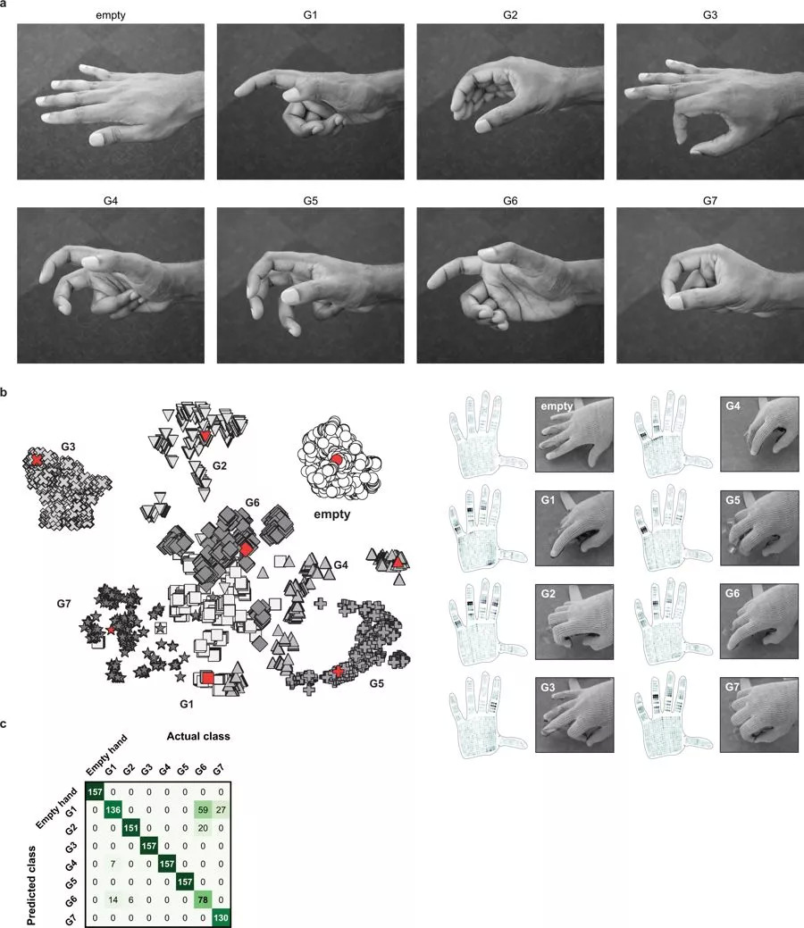 他们还实验了不同的姿势,证明手套传感器读取的信号非常详细,足以区分不同的姿势。