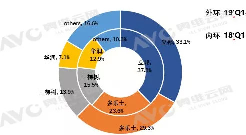 2019’Q1精装修乳胶漆市场品牌份额对比