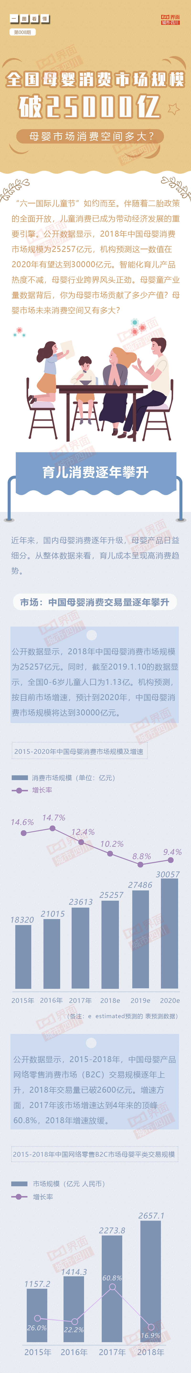 “六一国际儿童节”如约而至。随着二胎政策的全面开放,儿童消费已成为带动经济发展的重要引擎。公开数据显示,2018年中国母婴消费市场规模为25257亿元,机构预测这一数值在2020年有望达到30000亿元。智能化育儿产品热度不减,母婴行业跨界风头正劲。母婴童产业量数据背后,你为母婴市场贡献了多少产值?母婴市场未来消费空间又有多大?