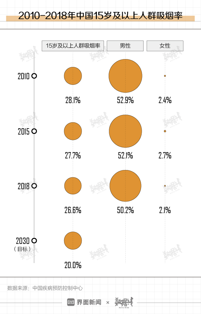 吸烟率逐年下降,男性吸烟率是女性25倍