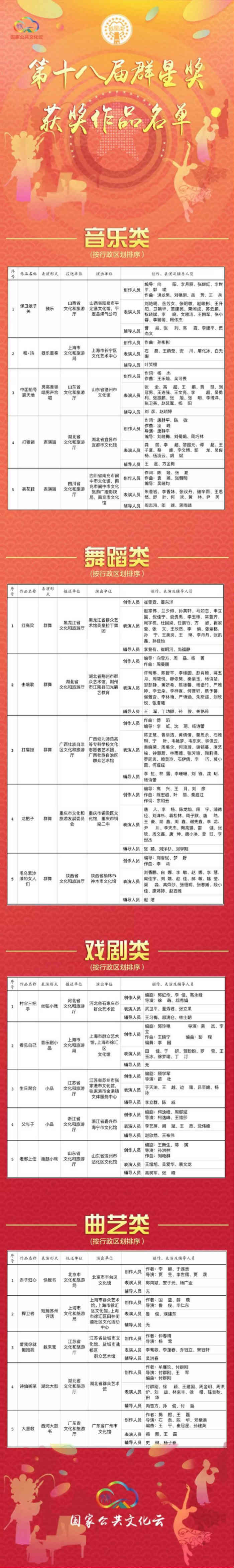 昨晚,第十二届中国艺术节第十八届群星奖颁奖晚会在上海东方艺术中心歌剧厅举行,本届群星奖的20个获奖作品揭晓。文化和旅游部副部长张旭、上海市副市长宗明出席晚会并颁奖。