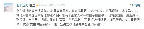 一口气看完12集一点都不费劲,因为解压是“甜爽剧”的共性,但主角光环过度严重的设定,待观众情绪过后便会发现该剧有太多经不起推敲的“现代化”剧情。翻阅豆瓣点评,夸的都是演员演技,贬的却是剧情烂俗。