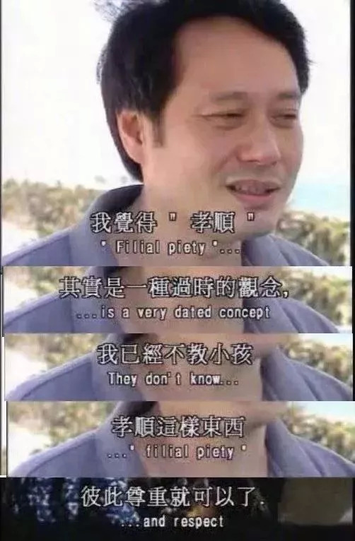 导演李安曾说,我觉得“孝顺”其实是一种过时的观念,他已经不会再教小孩“孝顺”,只要能做到彼此尊重就好了。