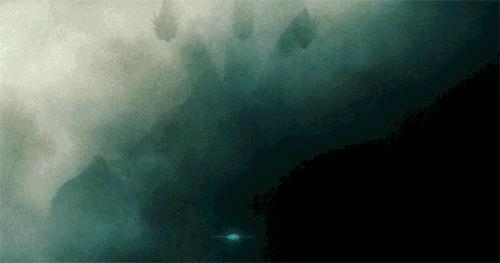 在《摩斯拉》中,它就曾因为愤怒而苏醒,在海里摧毁过一艘游轮。