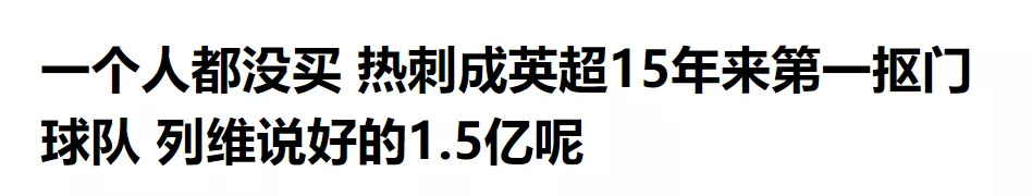 同时,在刚刚过去的两个转会窗口里,列维没花一分钱买人,两个转会窗口一名新援都没有降临,热刺是本赛季英超唯一一支完全没有花钱引援的球队。