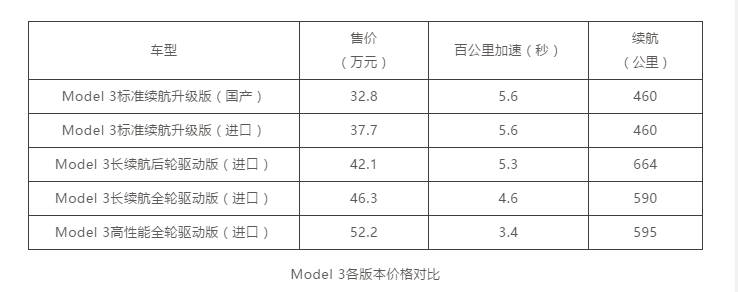 根据官方消息,国产Model 3标准续航升级版的参数均与进口的Model 3标准续航升级版一致,同样标配升级版内饰套件,但二者售价相差4.9万元,国产车型肯定有更高的性价比。