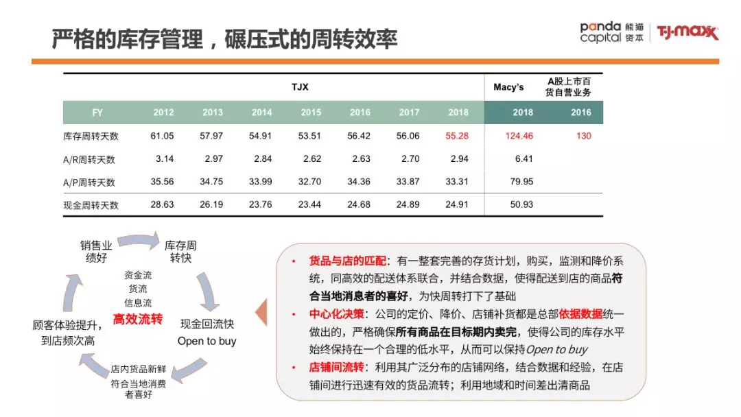 3)TJX和传统百货不同的利率结构:低毛利,低费率,通过提升运营和供应链效率,实现相对可观稳定的净利率和资本回报;从这点上来说,TJX是在利率结构上进行了创新的新型百货,并培养/扶植了一些新的适应其渠道的品牌。