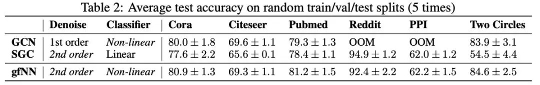 定理7表明,在假设1下,gfNN和GCN具有相似的高性能。由于gfNN在学习阶段不需要邻接矩阵的乘法,因此它比GCN要快得多。此外,gfNN对噪声的容忍度也更高。