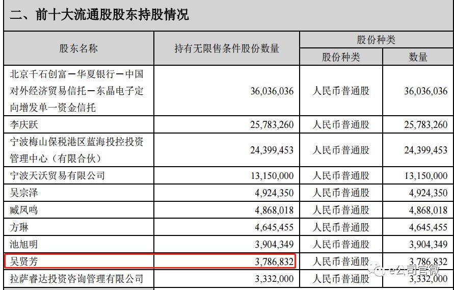 吴贤芳是谁?在东晶电子之前,吴贤芳共出现在过3家上市公司股东榜单中,分别是江苏国泰、澳洋顺昌和华昌化工。巧合的是,这三家上市公司都位于江苏省的张家港市,和东晶电子5月31日卖一营业部同在一地。疑问由此产生,吴贤芳为何摒弃之前只交易张家港本地个股的习惯,大举买入位于浙江金华的东晶电子?是否存在内幕交易的行为?需要进一步调查。