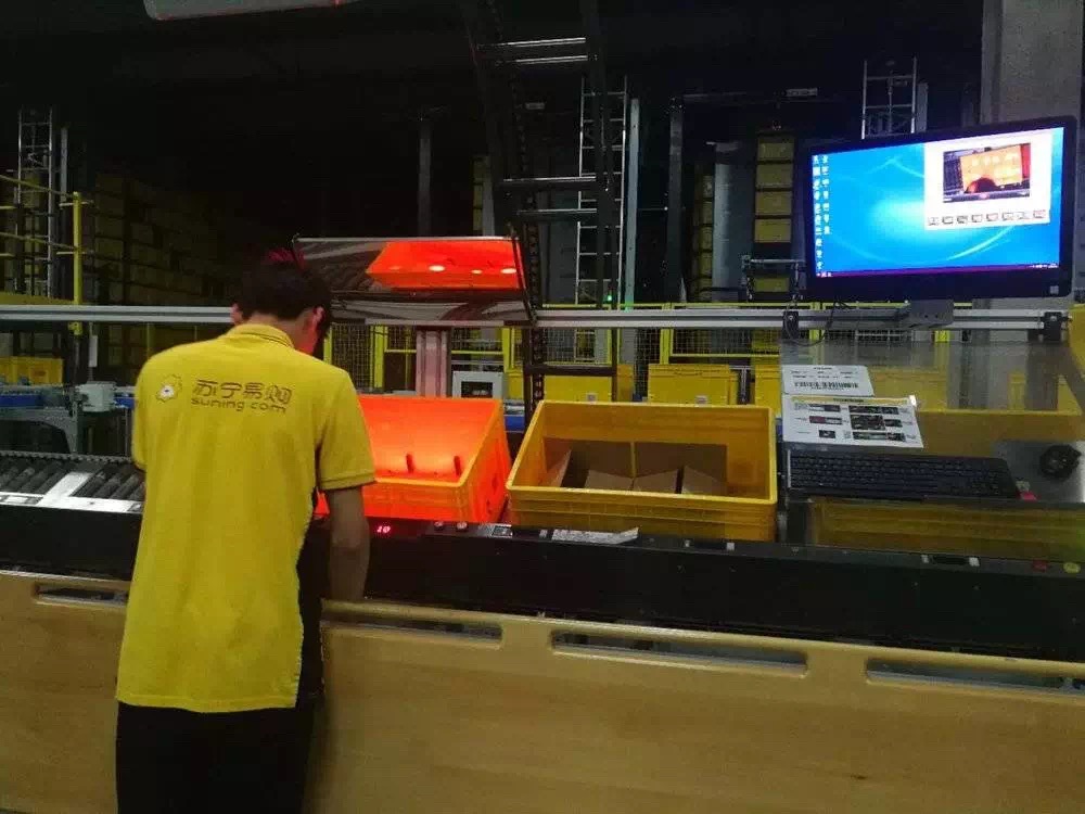 “这个很容易上手。”苏宁物流集团的工作人员告诉参观者,在工作人员的指导下,虎嗅君一分钟就学会了如何分拣选商品入箱。然后,装好料箱在传送带上飞快的滑行着,他们就像游乐场“疯狂的老鼠”中的“老鼠”,快速却又有秩序的奔向各自的出口。