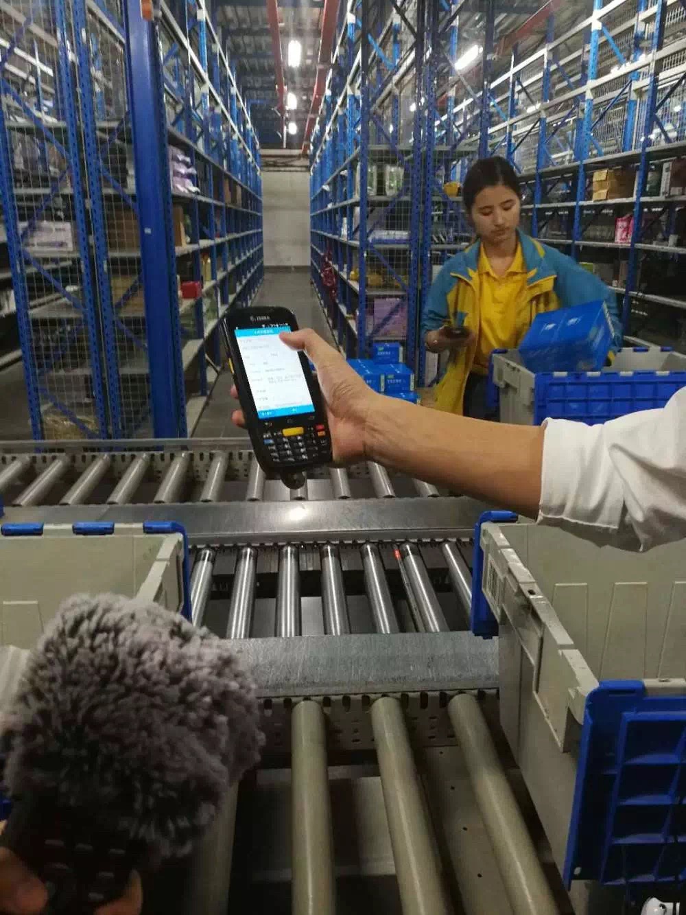 在仓库内,一排排阁楼式高密度分拣货架矗立在眼前,你仰头向上望去甚至会有晕眩的感觉。