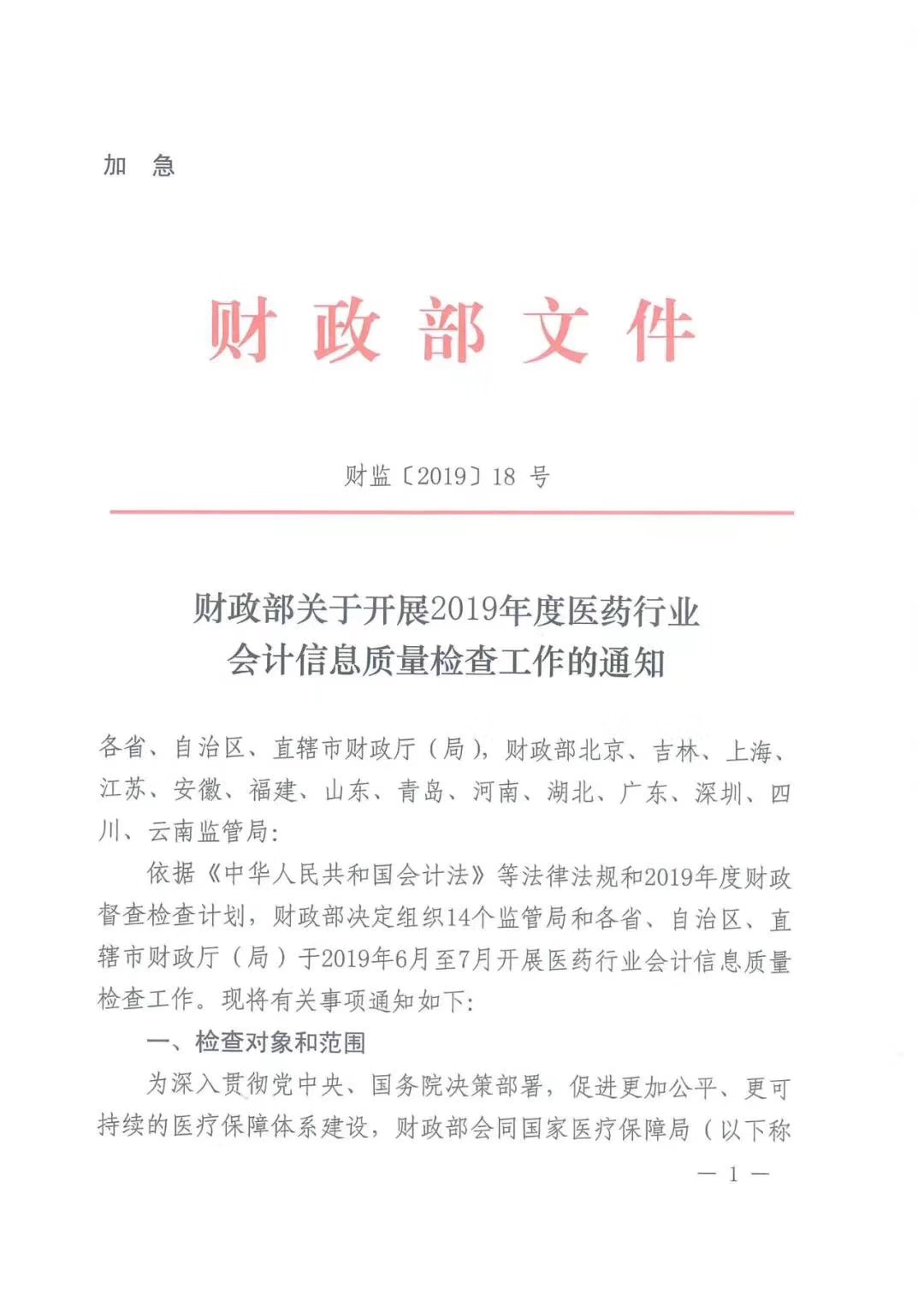 6月4日,国家财政部发布《财政部开展2019年度医药行业会计信息质量检查工作》,宣布为深入贯彻党中央、国务院决策部署,促进更加公平、更可持续的医疗保障体系建设,依据《中华人民共和国会计法》等法律法规和2019年度财政督查检查计划,财政部决定组织部分监管局和各省、自治区、直辖市财政厅(局)于2019年6月至7月开展医药行业会计信息质量检查工作。