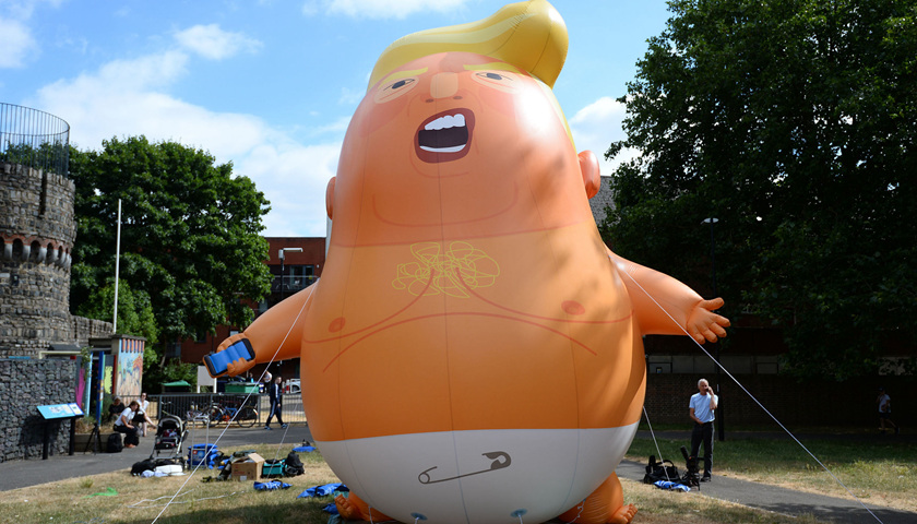 去年7月,在特朗普对英国进行工作访问之前,英国民众发起请愿、筹集1.6万英镑特制了以特朗普为原型的充气气球,并在特朗普访英时放飞。