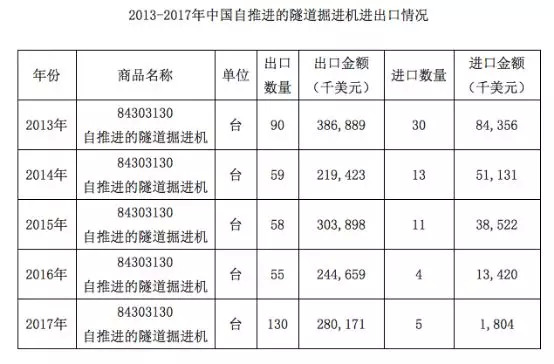 (中国的盾构机进出口变化)