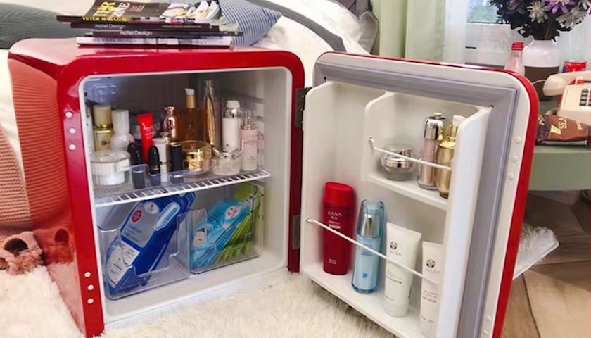 他们学着明星和美妆博主们的样子,将面膜、精华、口红等单品分门别类地从梳妆台挪到了冰箱冷藏室,希望产品能始终保持最佳使用感。为了避免和蔬菜水果串味,最好买一个可以摆在桌上的迷你小冰箱。