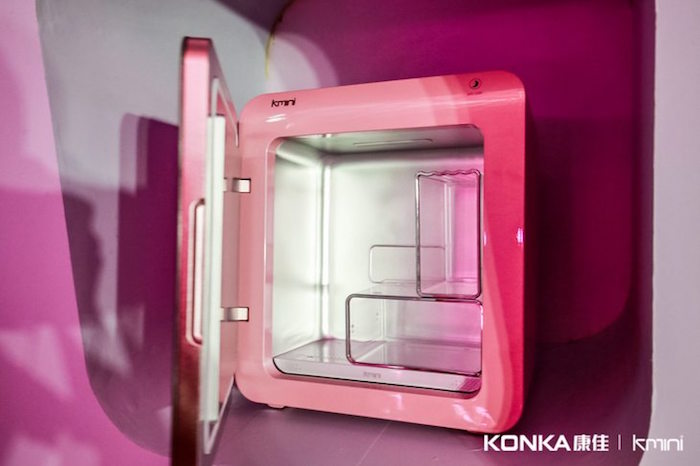 康佳日前就发布了一款迷你化妆品冰箱Kmini,起名“冻龄魔法盒”,这款冰箱容积只有8升,预售价格为1999元。在电商平台天猫上,小吉、哈士奇等品牌的化妆品专门冰箱因颜值年轻化备受关注,而先科、TCL等平价车载小冰箱也以化妆品冰箱为卖点,获得了不错的销量。