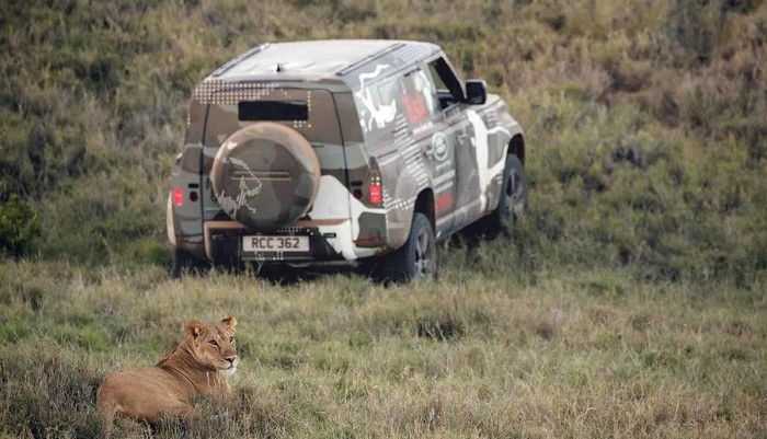 这辆原型车比起以往的测试骡车减少了非常多的伪装。从照片上可以明显看出这辆4x4越野车的整体轮廓,严格来说,这辆车哪怕现在转成民用也未尝不可。否则名为Tusk Trust的野生动物保护慈善机构不会让它担任如此辛苦的工作。在发布的照片中,可以看到卫士在保护区内牵引拖车,运送物资和对狮子进行追踪。