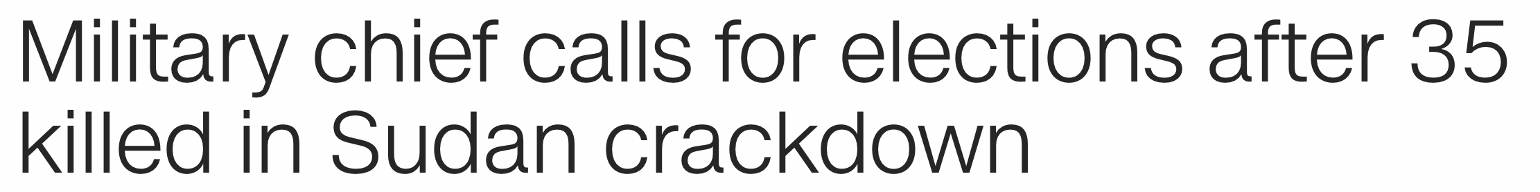 【苏丹执政的军事委员会要求举行选举】苏丹执政的军事委员会要求举行选举,此前军队突击了支持民主的抗议者的主要营地,开枪打死至少35人,引起国际谴责。