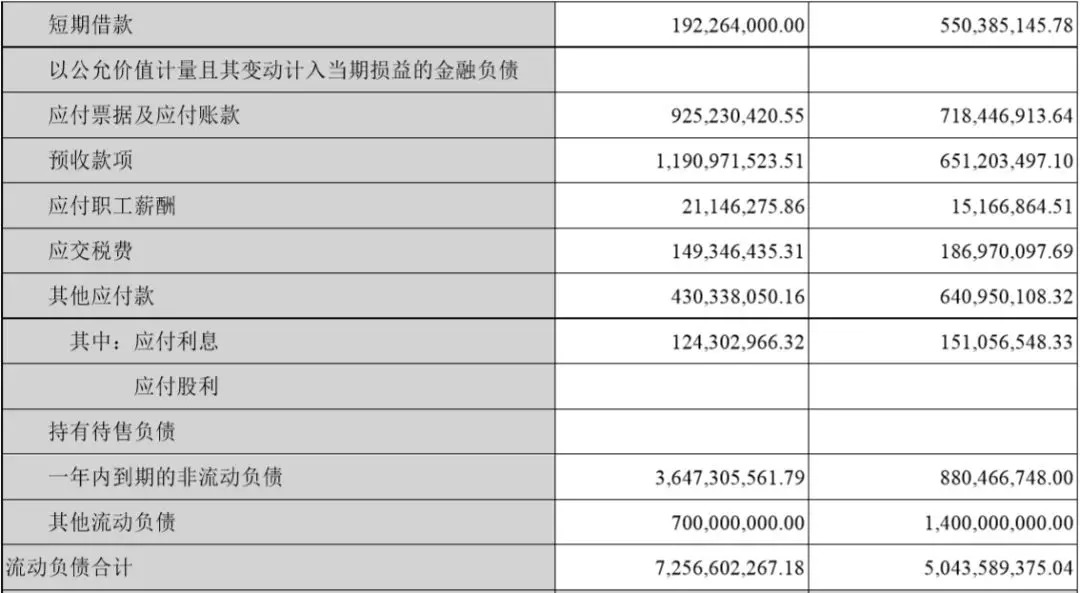除掉这两笔共计29亿元的债券,华谊的流动负债还包括近2亿的短期借款,9.25亿的应付票据及应付账款,12亿的预收款以及薪酬、税费等,共计43.57亿元。