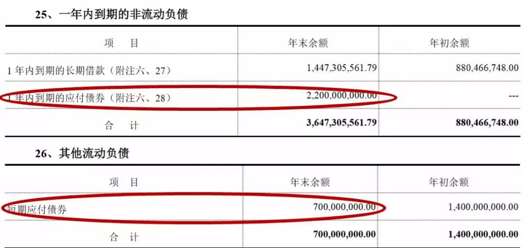 其中最大的一笔当属一年内到期的非流动负债36.47亿元,这里面包含了华谊已经归还的22亿元中期债券,另外7亿元的其他流动负债,是华谊也已经还掉的那笔短期债券。