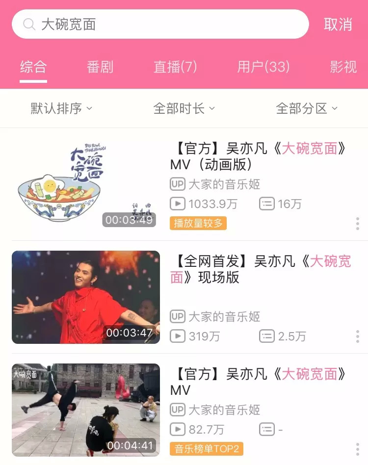 其次,音悦台在粉丝互动上布局相对薄弱。虽然平台官网上设有供用户互动的板块,但并没能充分挖掘粉丝价值,导致网友们更愿意把创作内容、八卦时间留给娱乐性更强的B站和微博。吴亦凡在发布《大碗宽面》的MV后,粉丝以此为文本二次创作了大量鬼畜视频。这些内容在B站迅速传开,形成了大众狂欢。而“想做粉丝经济,先做粉丝服务”的音悦台,似乎还是只关注了粉丝的消费行为,而非娱乐行为。