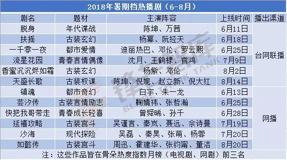 根据去年热播剧集所具备的主演阵容自带流量热度、题材新颖或自带庞大受众基础、引领新类型剧等三大要素,以及《镇魂》《延禧攻略》《香蜜沉沉烬如霜》所带来的双男主、爽感、甜虐等爆款品相,可推测出今年具备这些要素的暑期档作品数量不少。