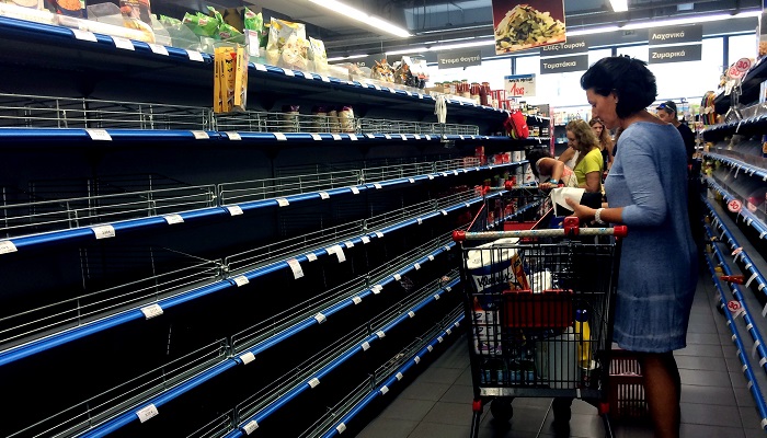 然而,就在这样重要的一天,许多希腊人却可能在忙着抢购生活必需品,雅典一些超市的货架已经变得空空荡荡。由于银行关门、ATM现金被取空,一些人甚至没钱坐车去参加投票。