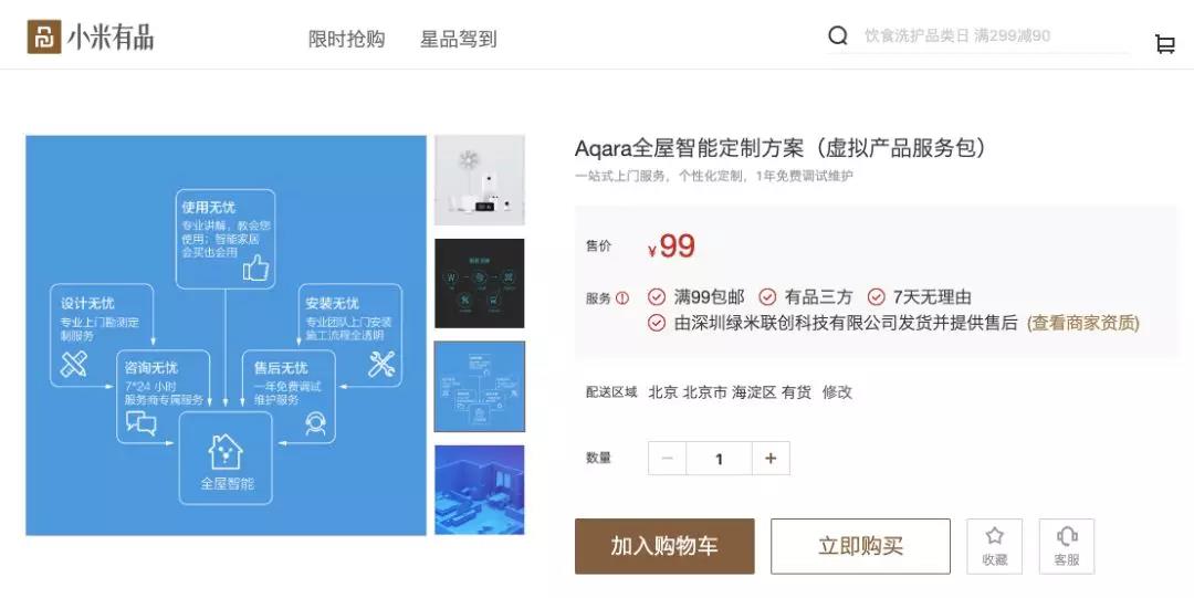 从2018年正式招商到目前为止,一年多时间里,Aqara在全国拥有300家服务商,210家标准店,预计到年底将拥有1000家服务商,800-1000家标准店,明年将开设2000家标准店,实现对中国县级市90%的覆盖,最终让智能家居普及到千家万户。作为唯一一家能够提供全屋智能家居定制服务的智能家居品牌,Aqara与小米有品合作是期望让更多大众用户能够体验到真正的智慧生活。因此,也将借助618这样的关键节点,只需花99元便可预约服务商上门勘测和定制全屋智能化解决方案。