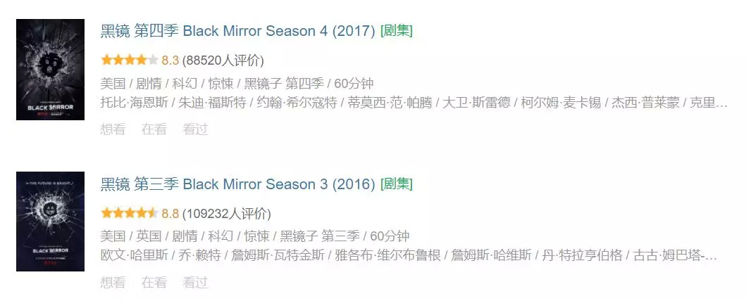 不过,《黑镜》自从第三季开始被Netflix接手之后,评分一路下滑,似乎已经开始走下神坛。