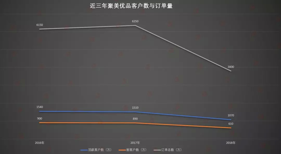▍聚美优品近三年订单数据,数据来源于2018年财报