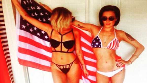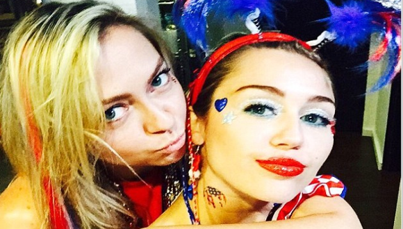周六,22岁的麦莉·赛勒斯分享了一张她与朋友身穿国旗服装的照片。烈焰红唇乐队的主场韦恩、韦恩女友凯蒂·韦弗、麦莉姐姐布兰迪·塞勒斯也都加入到狂欢之中。