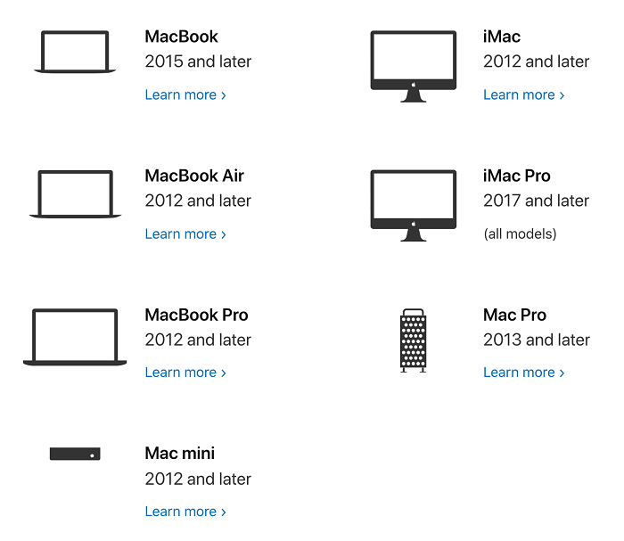 如果你不清楚哪些Mac设备支持更新macOS 10.15 Catalina,正好下面的这张图就会有答案。