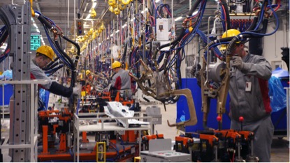 图拉工厂的冲压车间建设有全自动封闭式生产线,焊装车间主焊线自动化率达到100%;涂装车间同样采用先进的自动化流水线,以有效保证车身漆膜质量,提升线体自动化程度。总装工艺采用双线体布置,柔性化设计能够同时满足承载和非承载两种车型的生产。