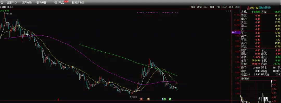 5天之后,捷成股份给出了一份36000余字的回复。不过,详尽的回复并没有中断捷成股份股价的下跌态势。从今年3月末到现在,捷成股份的股价从7.3元已经跌至昨日收盘的4.38元,降幅40%,接近腰斩。如果把时间线放长,捷成股份的股价从2018年3月的11.5元到现在的4.43元,股价降幅已经超过61%。