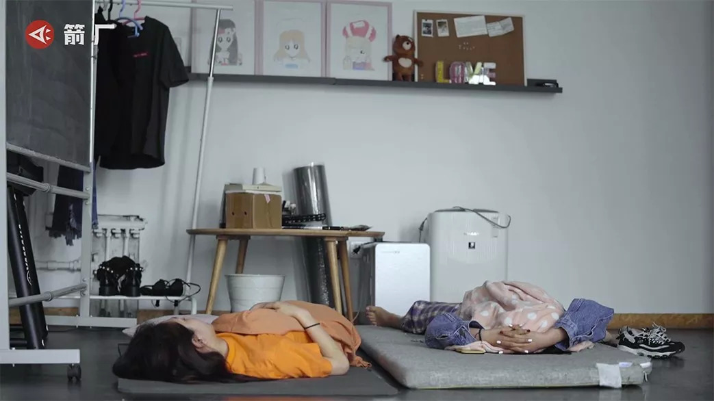 张铠麟手下的音乐制作公司热手文化,位于北京东五环外的一个文化创意产业园区内,这里也是 3unshine 三名成员在北京临时的家。她们平时吃住都在公司,晚上轮流睡沙发,有时打地铺。成员们常常吐槽公司的穷酸,用 Cindy 的话说,“公司的人还没有垃圾桶多”。