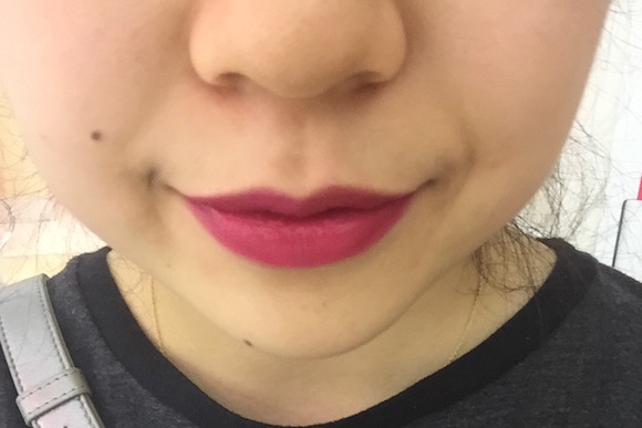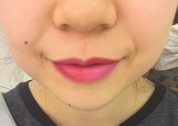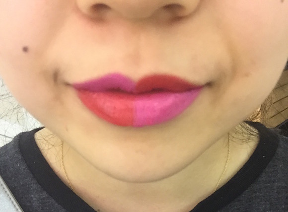 记者在导购的帮助下,用三个色号的唇膏完成了以下4种效果的妆容。