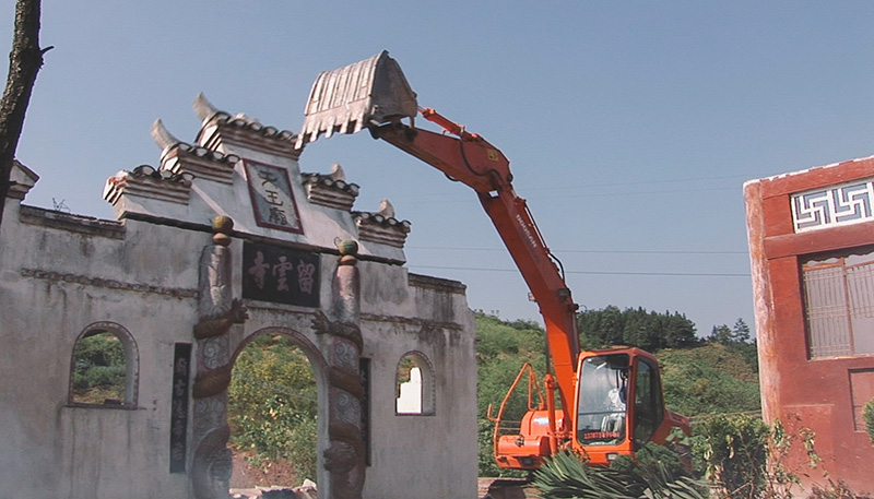 十分钟后,曾经香火兴旺的留云寺变成了一片废墟。几个泥塑菩萨彻底地变成了一堆尘土,回归了它曾经庇佑过的大地。只有“回头是岸”古碑和“大雄宝殿”的匾额被留了下来,这些东西将被弥足珍贵地重新砌在新寺里。一座号称传承自唐代的千年古寺,反复历经各种劫难后,到最后也只剩下这几件屈指可数的老东西,其他一切都是新的,如同这个日新月异的时代。