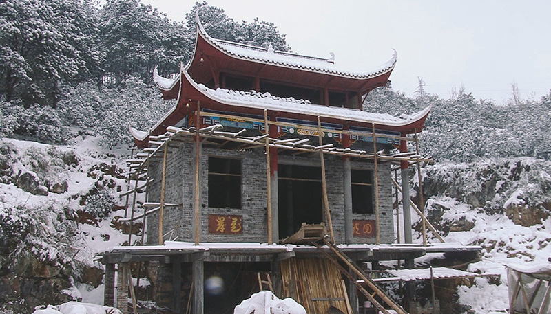 也许,真没有什么比一个城里的语文老师去乡村建一座庙更不务正业了。唐老师几乎每天都来报到,比项目部打卡的员工都还认真。他在38公里外的辰溪县城教书,每次在课余时间,就开着他的“现代车”风尘仆仆地赶过来。我很少听到唐老师主动谈起他的教学,但却经常听到他滔滔不绝地说起留云寺的历史,还有未来。