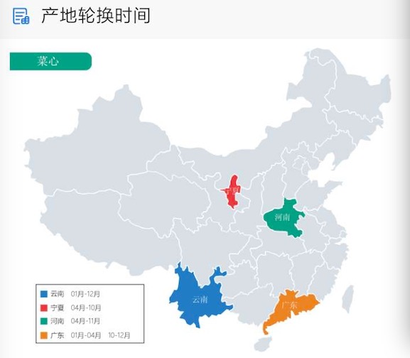 “最近处于菜心交换期,即主产区从河南、广东转至宁夏,到6月中旬其他产地的菜心会陆续减少,成为宁夏菜心的主场。”杨博告诉界面新闻,那个时候菜心的价格会逐步起来,河南菜心的品质会逐步下降,宁夏菜心会走上巅峰期——至于能涨到多少,他自己也不太敢预测。