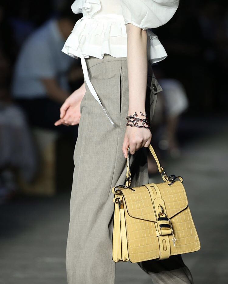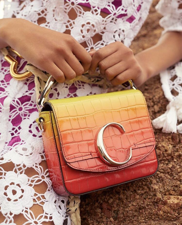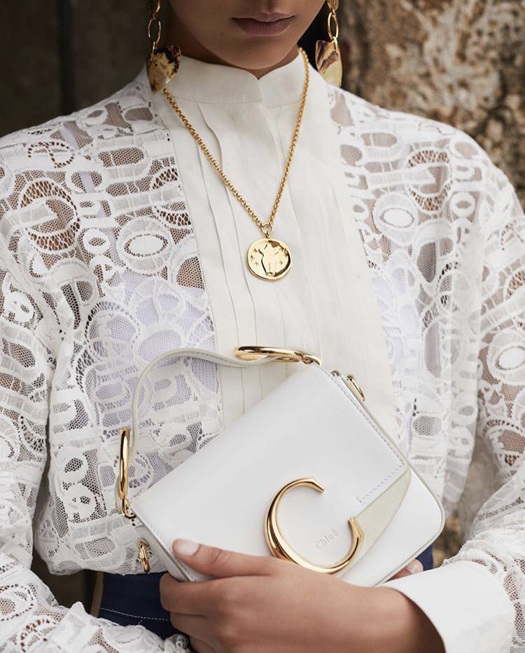 Chloé也随之做出了改变,在2019年推出了“Chloé C”系列手袋,字母大而醒目地位于包袋开合处。但除此之外,没有在logo上押注更多筹码。即便是Natacha近几季新推出了Roy、Tess和Aby数个包袋系列,仍保持着之前以廓形为主的设计路线。