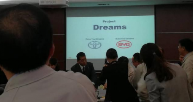 6月6日,网传一张丰田汽车研发中心(中国)与比亚迪汽车合作签约的照片。画面显示,比亚迪与丰田将成立“Project Dreams”项目,其中,丰田的Logo上方写着“Drive Your Dream ”,比亚迪的Logo上方写着“Build Your Dream”。