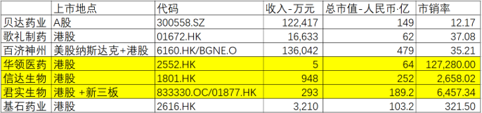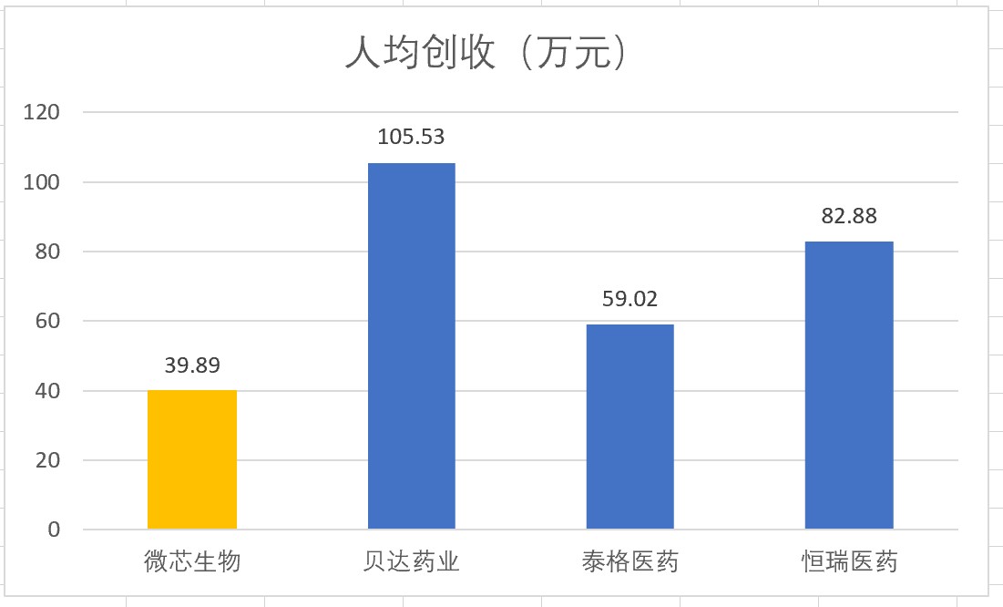 从营收规模来看,微芯生物1.48亿元的收入居行业前列。不过,上表中黄颜色显示的三家,2018年实现香港上市,产品刚刚投放市场,并处于大幅度亏损状态。微芯生物已经有成熟药品上市且长达四年,目前也有盈利,其估值基础与上述三家并不太一致。