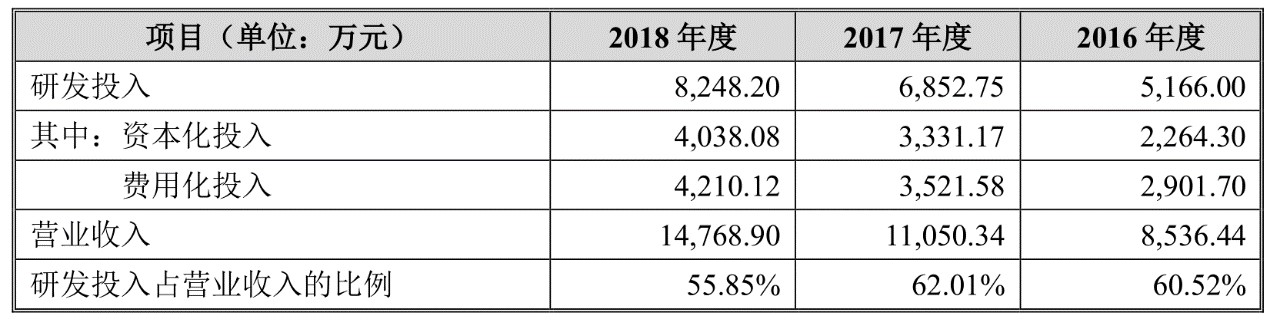 从研发状况来看,公司研发人员以60年代生留学归国博士为核心、以70年代生本土博士为骨干,截至2018年12月31日,公司拥有研发人员104人,占员工总数28.03%,其中博士13人,硕士及本科85人。过去三年公司累计投入研发费用超过2亿元,总体占营收的比重近60%。研发费用重点投向是人工成本,按照104个研发人员测算,人均研发费用17万元。