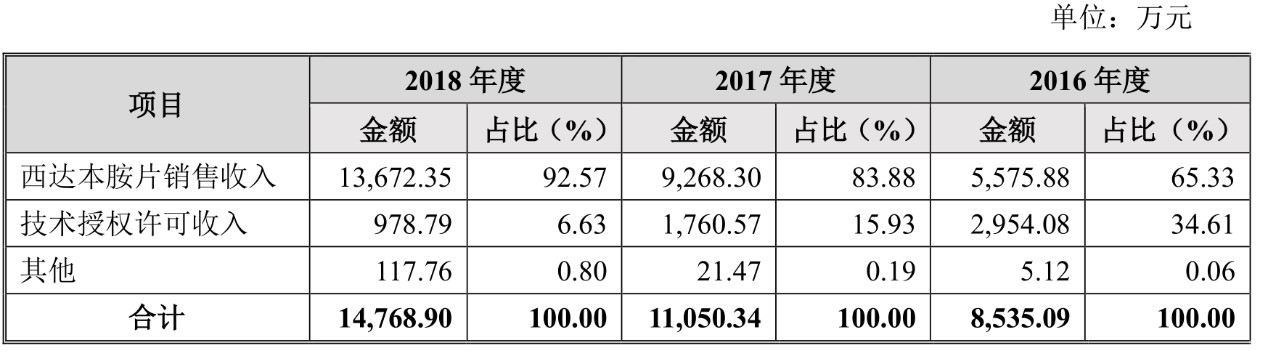 业务结构上,目前收入依赖核心产品西达本胺,2018年西达本胺的收入占比达92.58%,公司另有小部分的技术授权许可费收入。西达本胺的收入占比近三年来也在逐年上升。